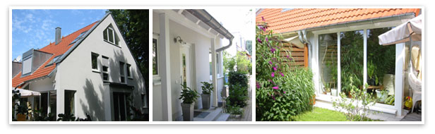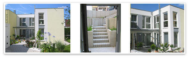 Um- und Neubau in Zollhaus Sanierung und Umgestaltung eines bestehenden Altbaus, zusätzlich Neubau und Angliederung eines Reihenmittel- und eines Reiheneckhauses in Nürnberg-Zollhaus. Bezug in 2002.