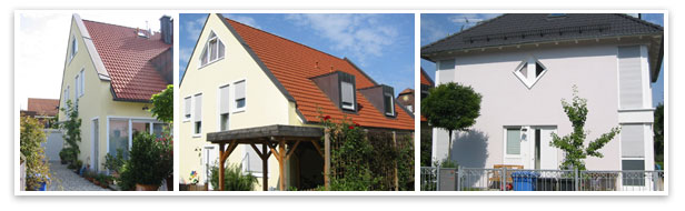 Familien-Eigenheime in der Gerasmühle Doppelhaushälften mit Wintergarten und Studioausbau in Nürnberg-Gerasmühle. Jeweils mit Vollkeller als Weiße Wanne und Qualitäts-Siegel. Fertigstellung 2003.